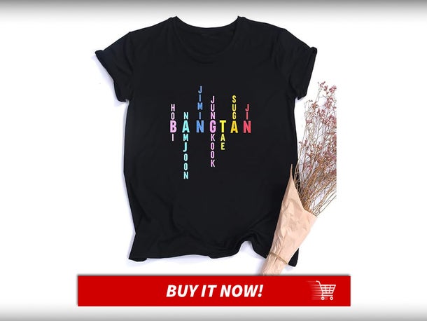 Эта футболка обыгрывает другое название группы — Bangtan Boys. На ней крупно написано слово «Bangtan», от которого отходят имена участников. Яркий дизайн включает смесь их никнеймов, сценических и настоящих имён. - Книга «Beyond the Story: 10-Year Record of BTS»