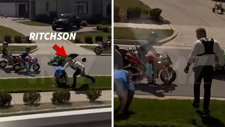 Мужчина сообщил полиции, что Ричсон ударил его по лицу и пнул. Затем, утверждает Тейлор, актер упал с мотоцикла, встал и попытался столкнуть его с дороги.