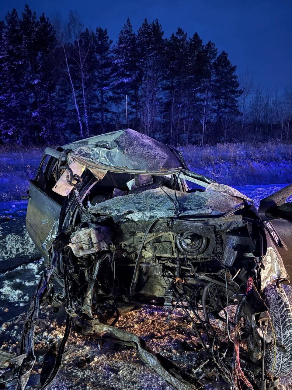 Водитель легкового автомобиля погиб на месте до приезда бригады скорой помощи.